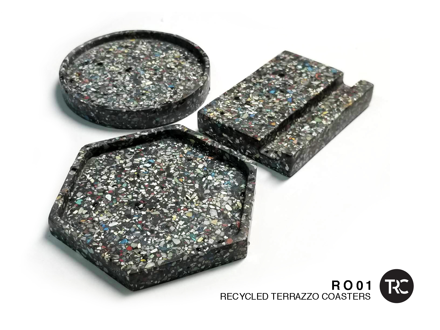 RO01 Recycled terrazzo coasters set